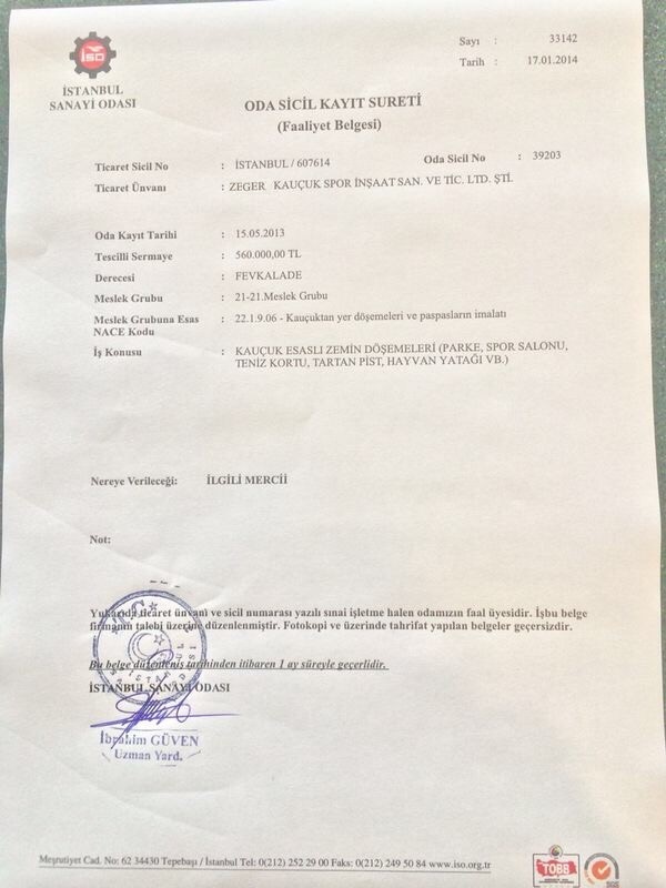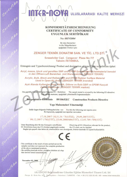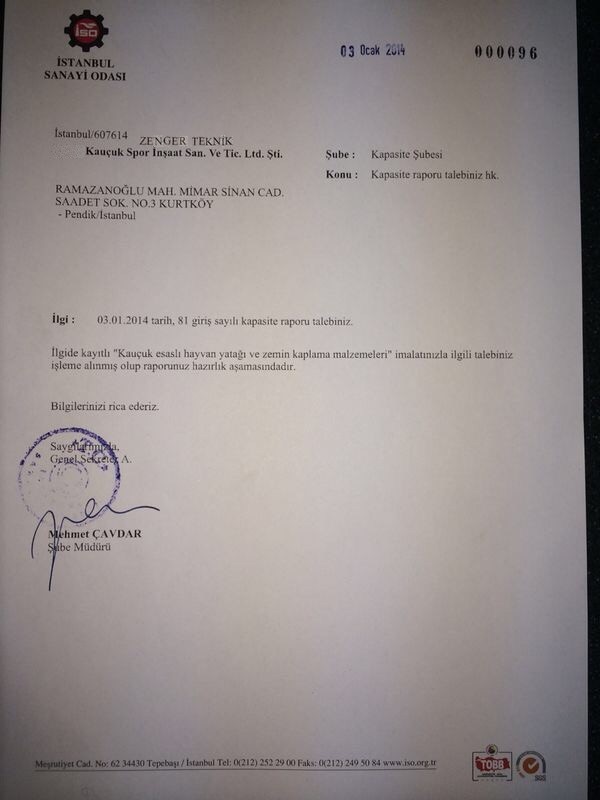 Uyumluluk BelgesiTSE Test RaporuTSE Certificate ISO 9001 2008STOCKMEIER Holding EN Certificate ISO 9001 2008STOCKMEIER Urethanes CE ZengerCE Zenger AcryflexT CushionPlus Certificate Epdm Kalite Belgeleritse iaaf ce iso IAAF İnek YataklarıKapasite Raporu İnek YataklarıOda Sicil Belgesi İnek YataklarıOda Sicil Belgesi 2 İnek YataklarıYerli Malı Belgesi ISO 9001alle Sprachen STUF CertificateISO 9001 2014 ENG Tek Yetki BelgesiGezoflex TSEYeni Belge 2016 Tel ÇitTSE Belgesi