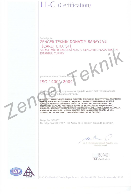 • Zenger Teknik olarak ISO 14001:2004 Çevre Yönetim Sistemi sertifikasına sahip bulunmaktayız