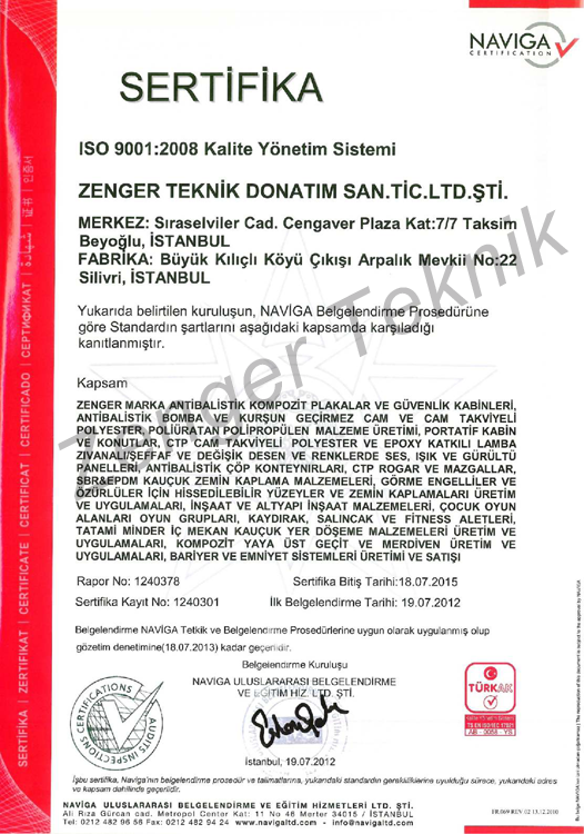 • Zenger Teknik olarak ISO 9001:2000 kalite yönetim sertifikasına sahip bulunmaktayız.