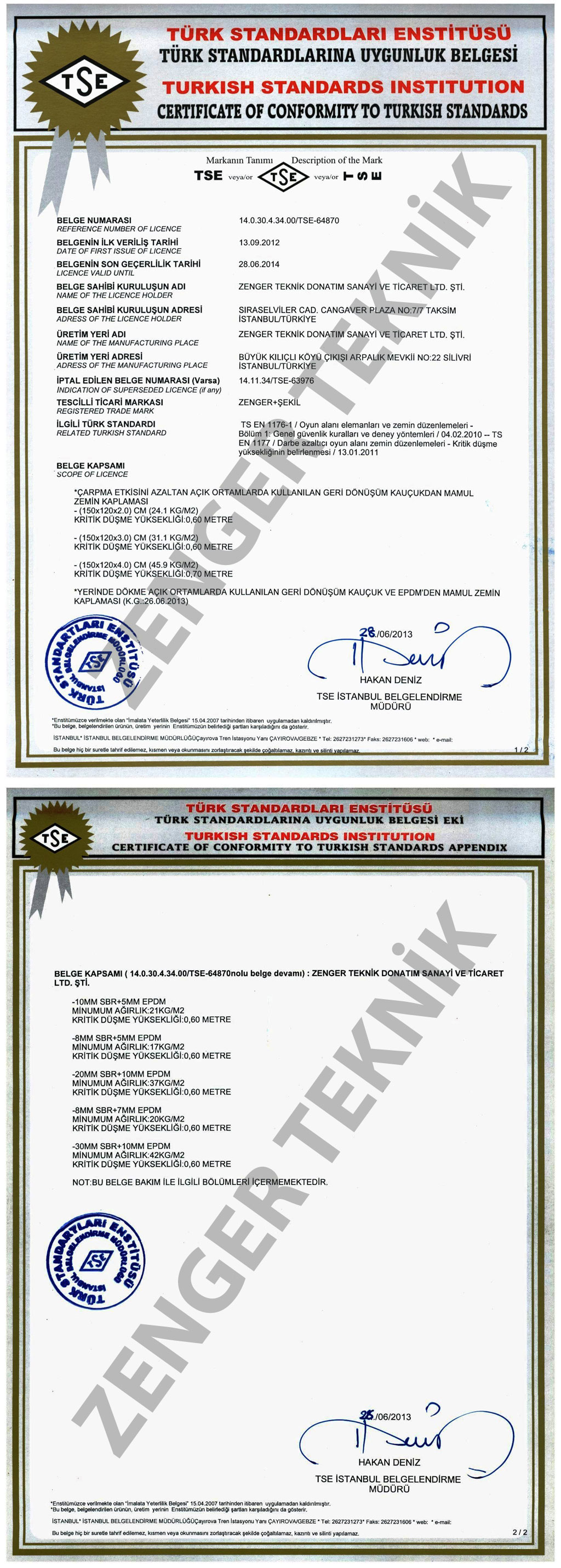 • Zenger Teknik olarak ürünlerimizin kaliteleri ile Türk Standartlarına uygunluk belgesi almaya hak kazandık.